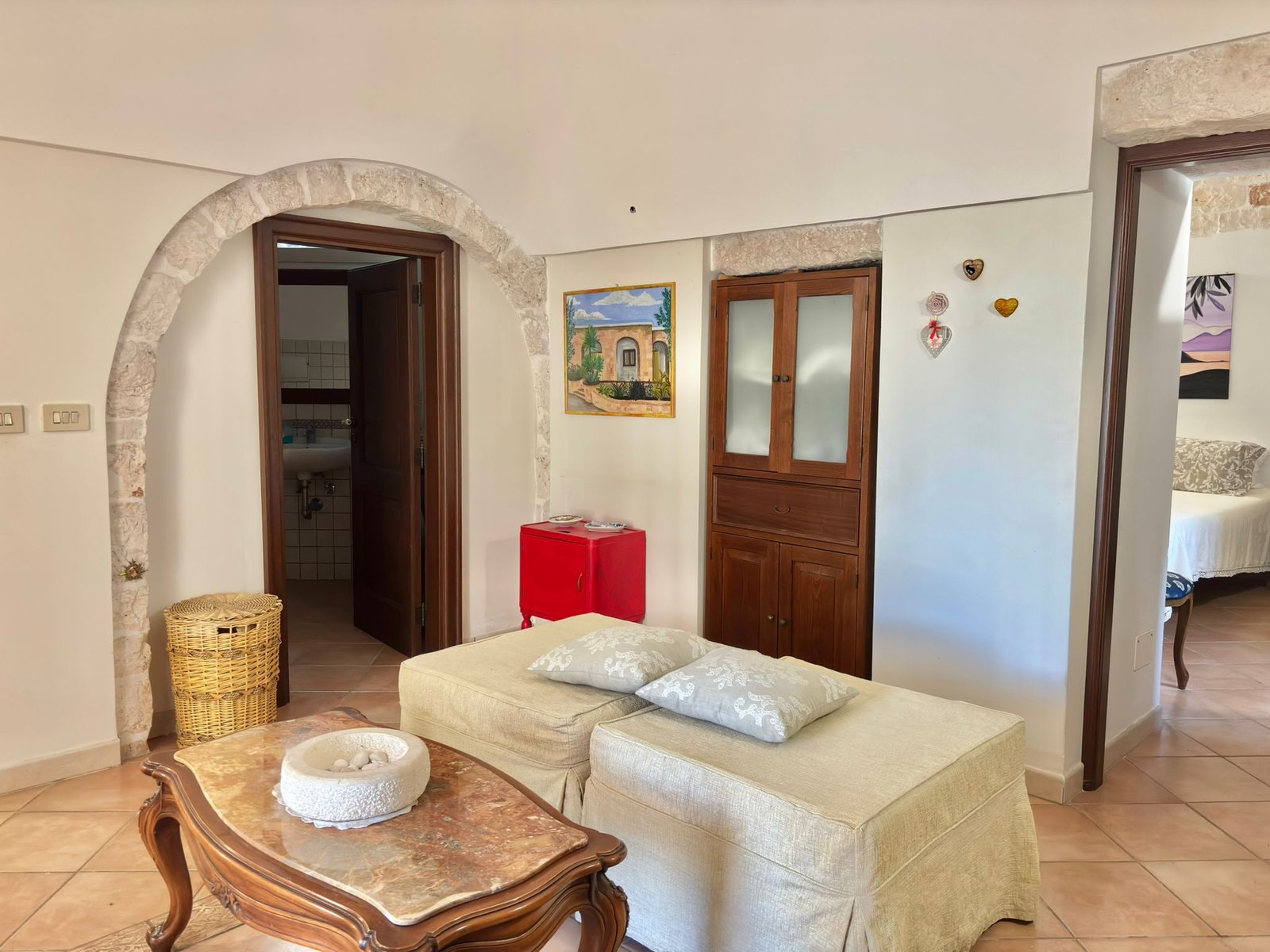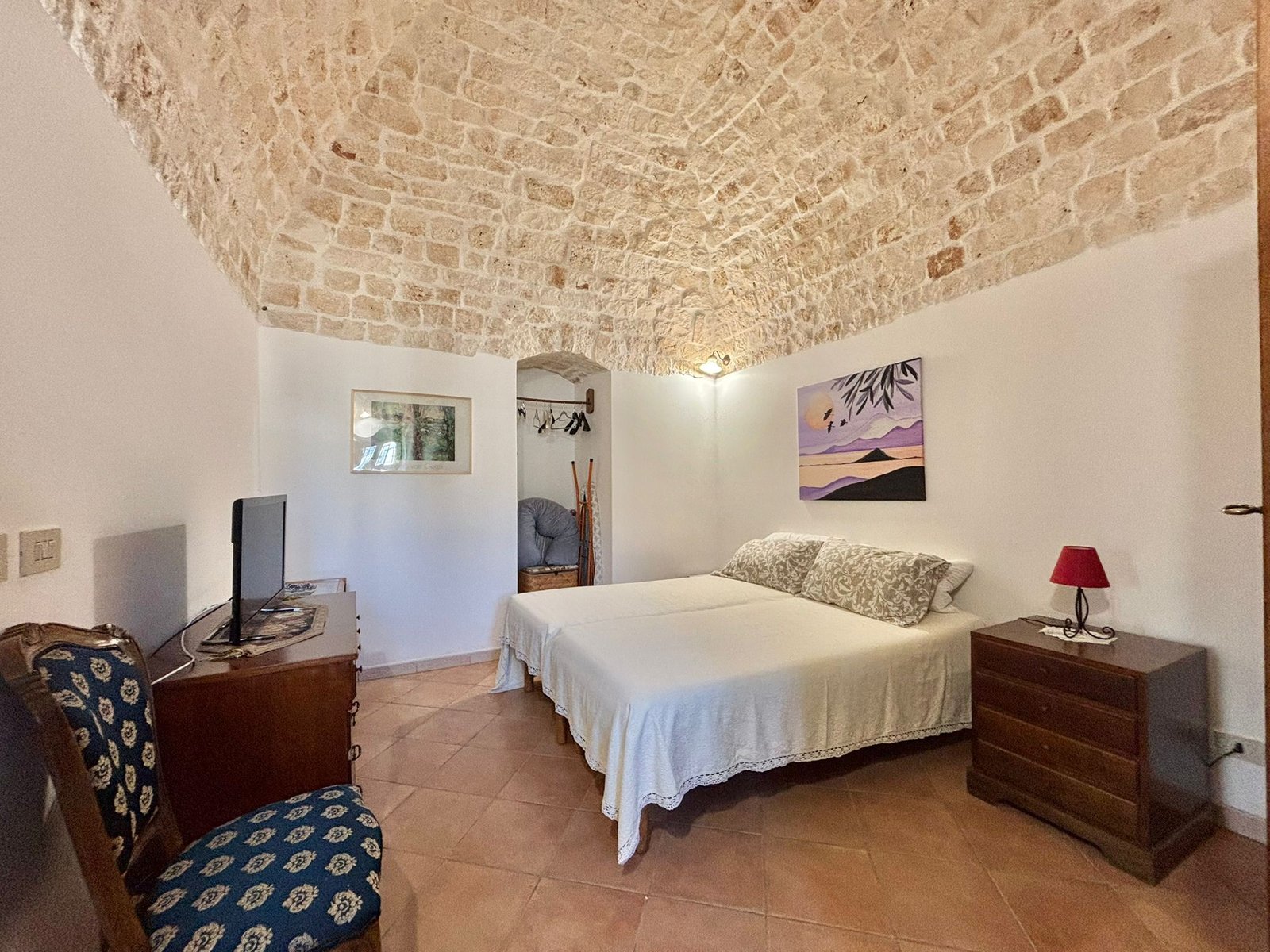 Il fiore all’occhiello della proprietà è rappresentato da un’antica unità in pietra locale, finemente conservata. Caratterizzata da autentiche volte a botte (o “a culla”) che donano un’atmosfera suggestiva e un’ottima inerzia termica. La casa offre un salone accogliente, cucina abitabile, due camere da letto spaziose e bagno. I dettagli in pietra a vista rendono l’ambiente unico e ricco di storia.