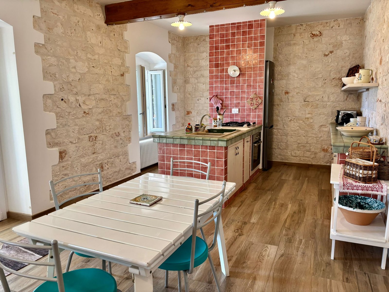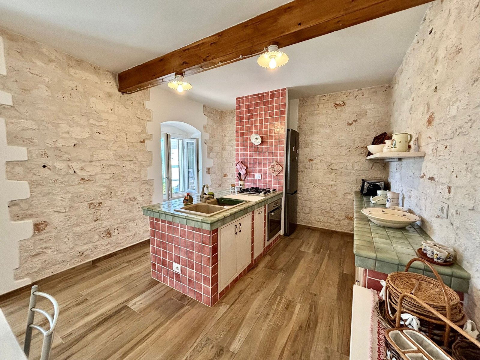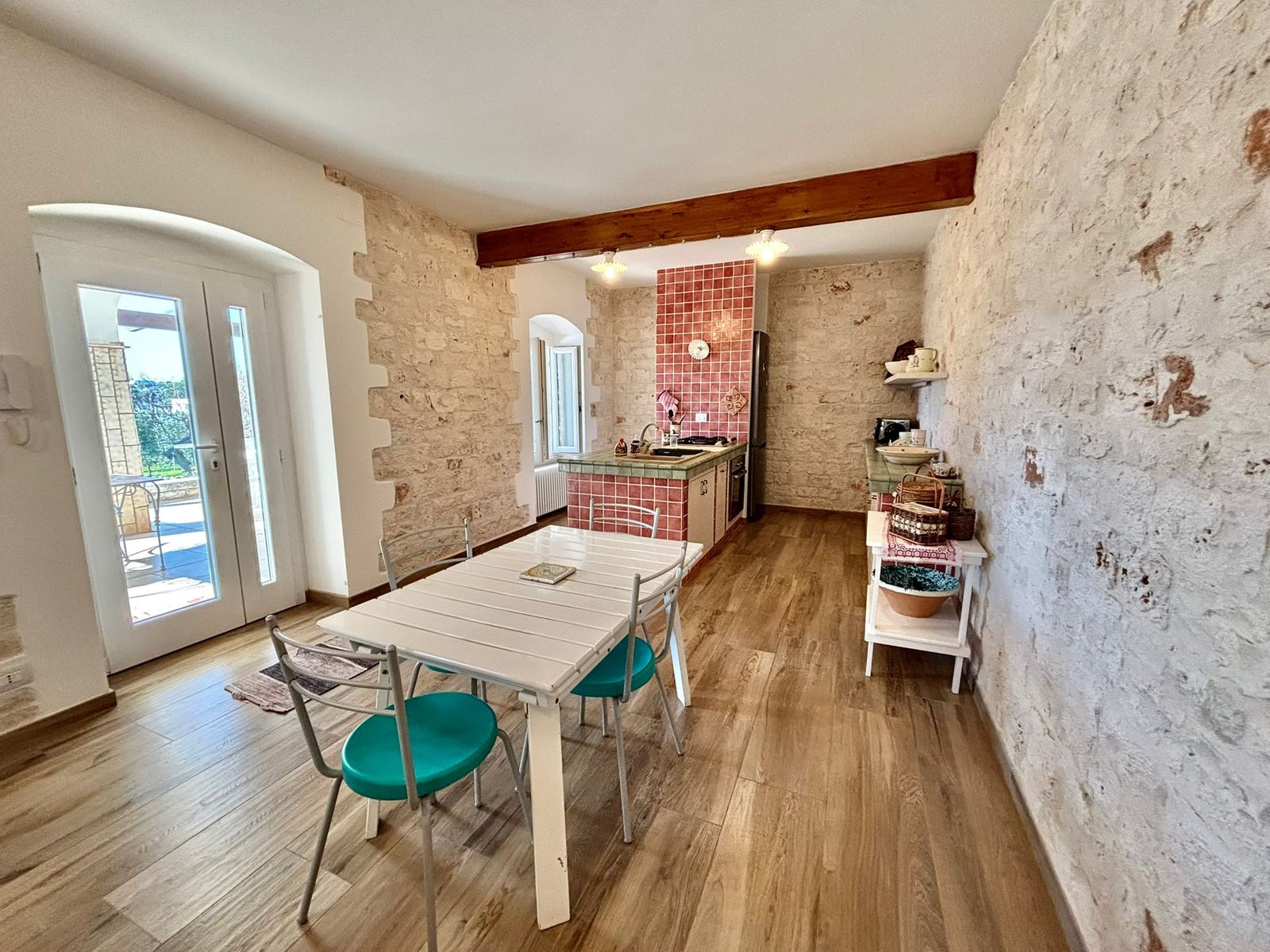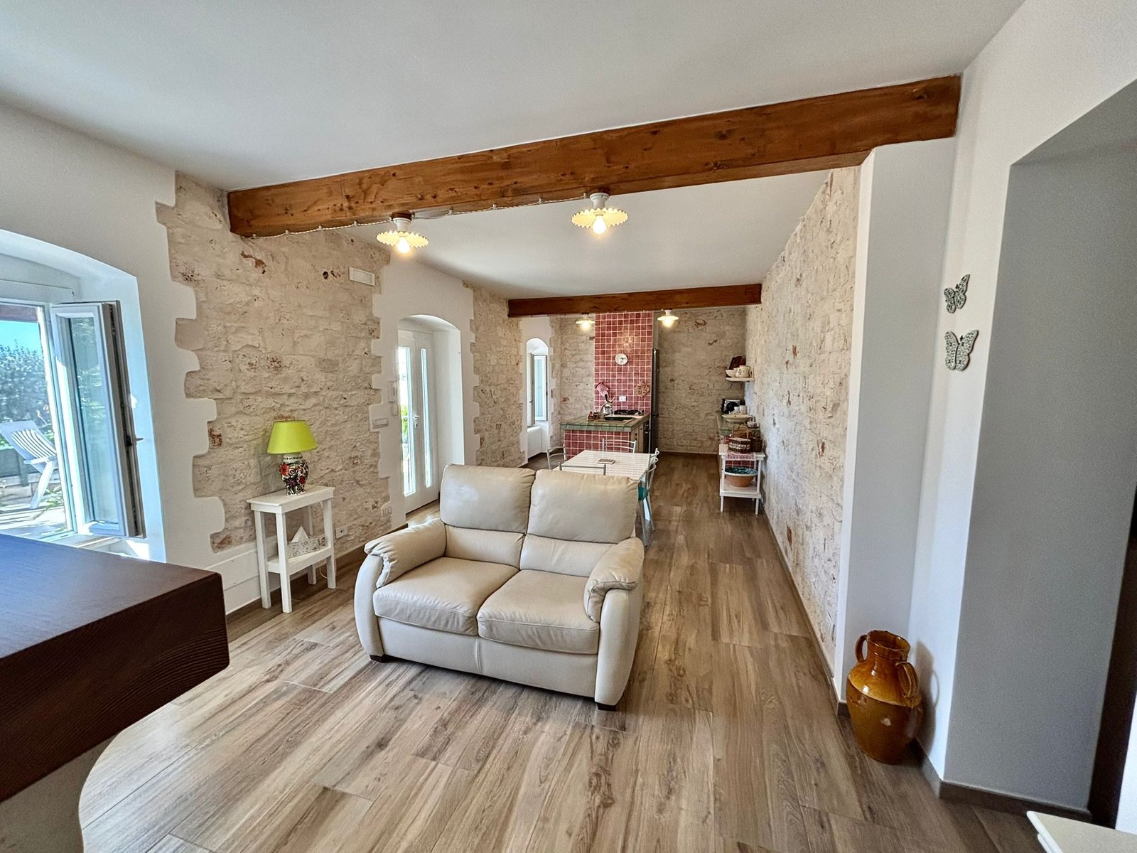 La proprietà, circondata da un ampio giardino curato e da terreno privato, offre un’atmosfera di assoluta tranquillità, tra muretti a secco, alberi d’ulivo secolari e scorci tipici della campagna mediterranea. Gli ambienti interni, luminosi e finemente rifiniti, conservano il fascino delle antiche dimore pugliesi grazie alle volte in pietra, ai dettagli artigianali e alla sapiente combinazione tra tradizione e comfort moderno.