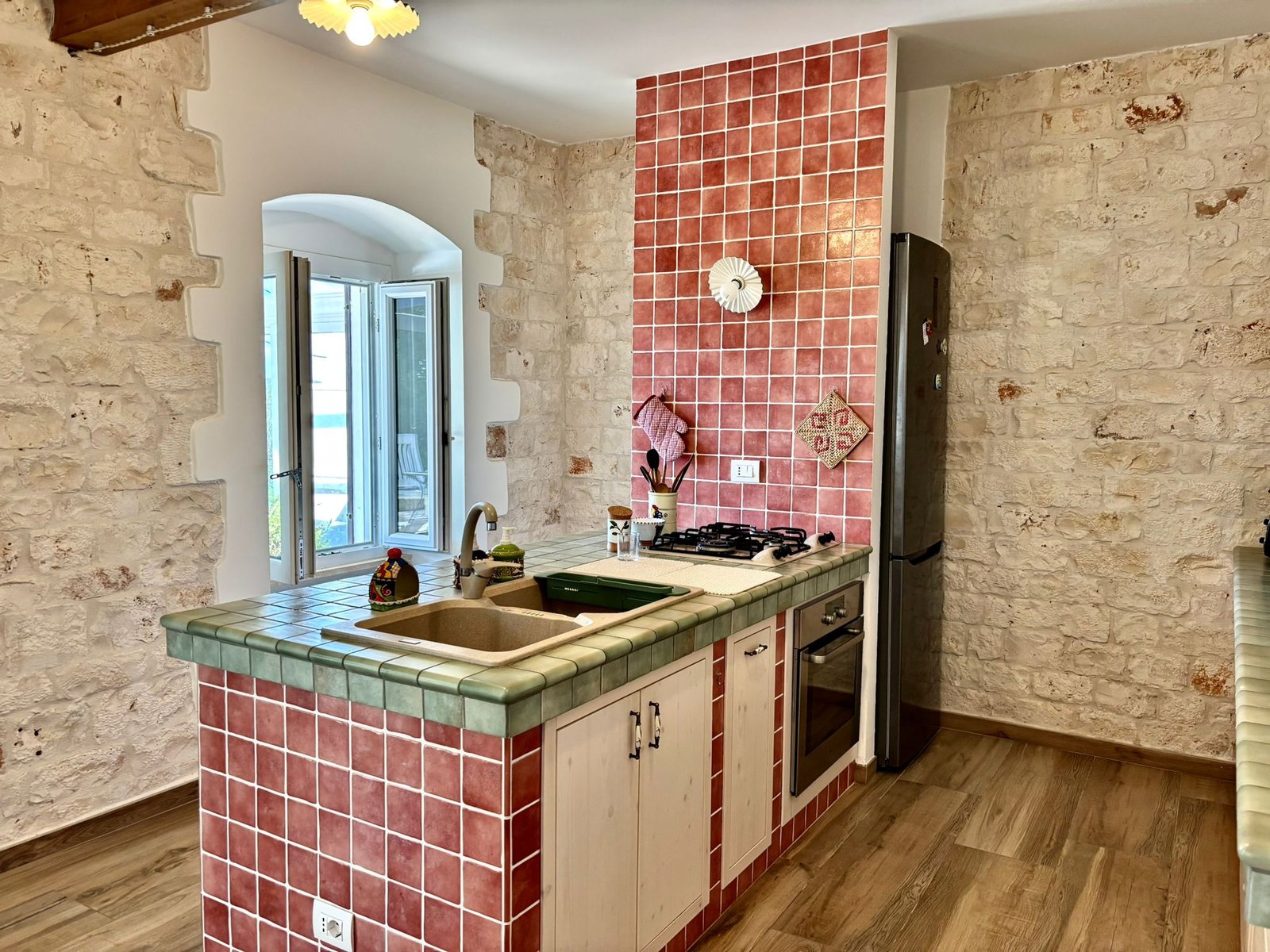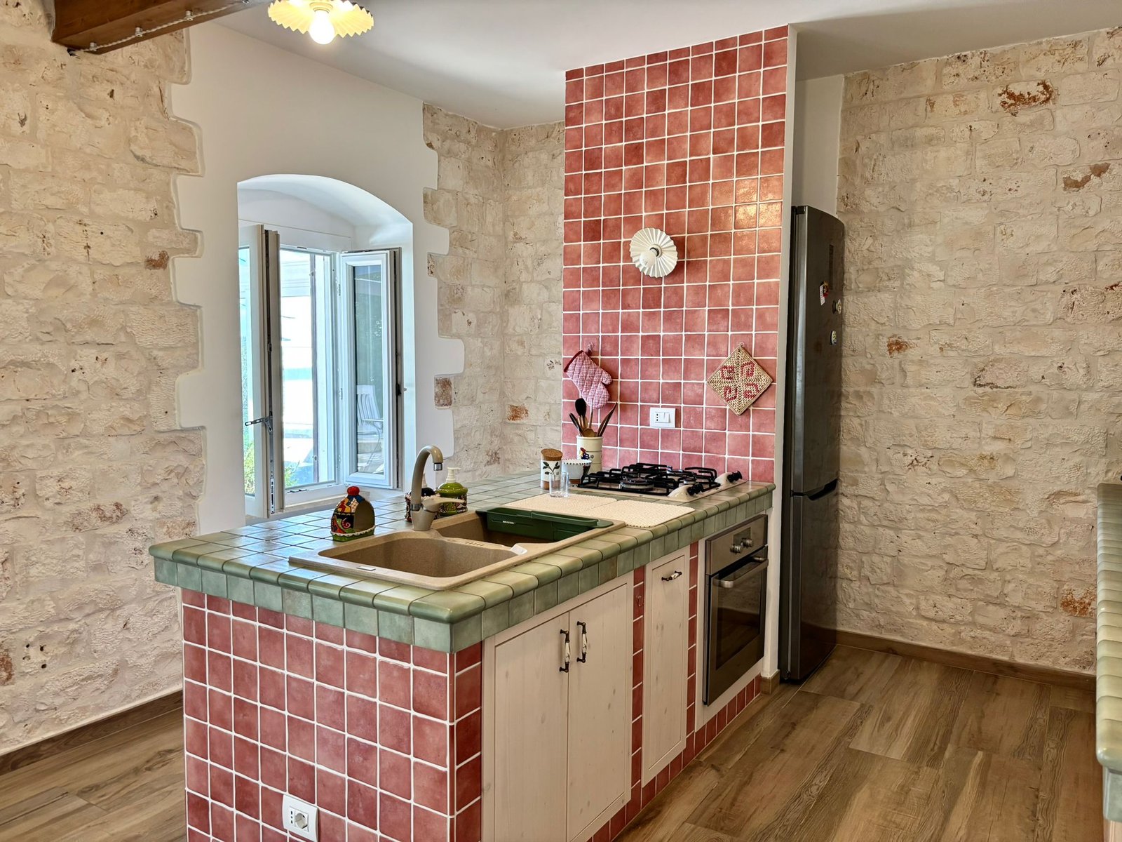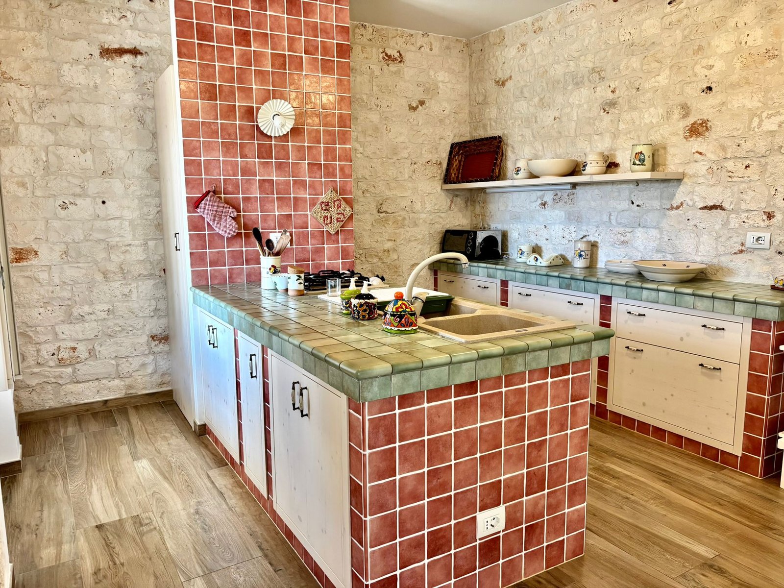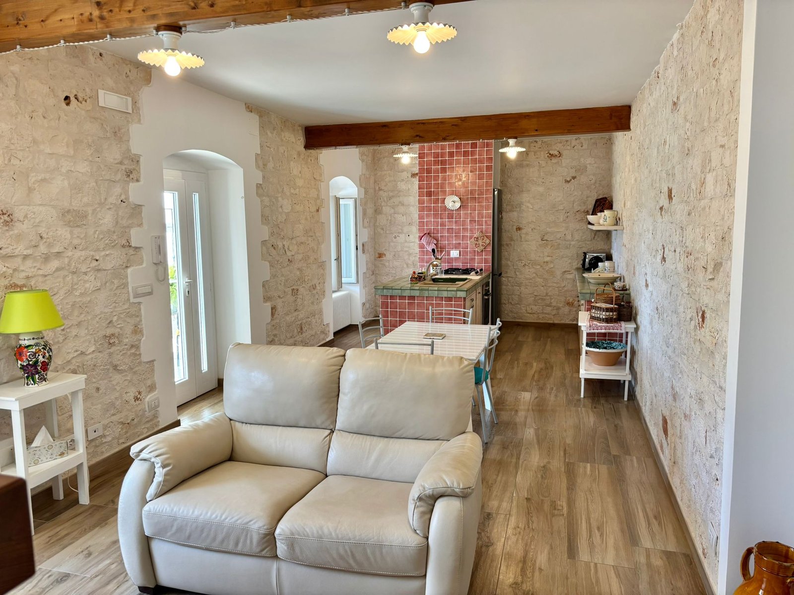 La proprietà, circondata da un ampio giardino curato e da terreno privato, offre un’atmosfera di assoluta tranquillità, tra muretti a secco, alberi d’ulivo secolari e scorci tipici della campagna mediterranea. Gli ambienti interni, luminosi e finemente rifiniti, conservano il fascino delle antiche dimore pugliesi grazie alle volte in pietra, ai dettagli artigianali e alla sapiente combinazione tra tradizione e comfort moderno.